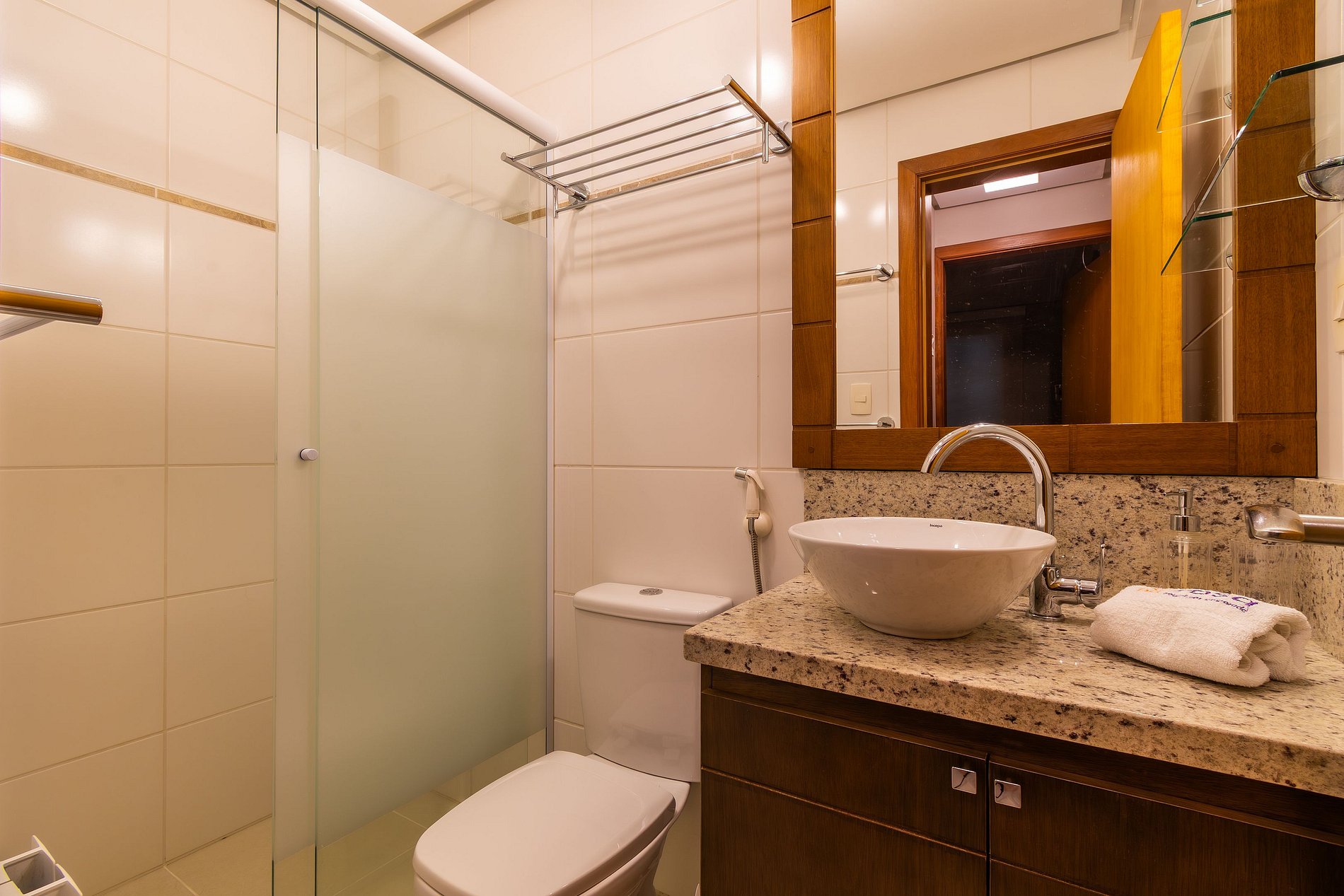 - 1 toalha de rosto por banheiro