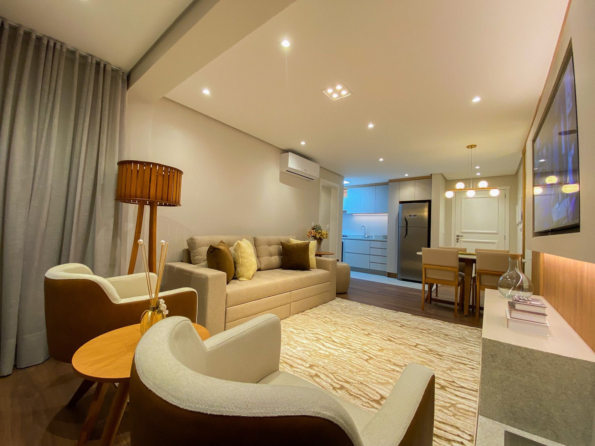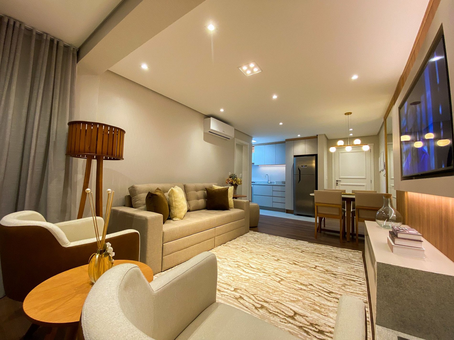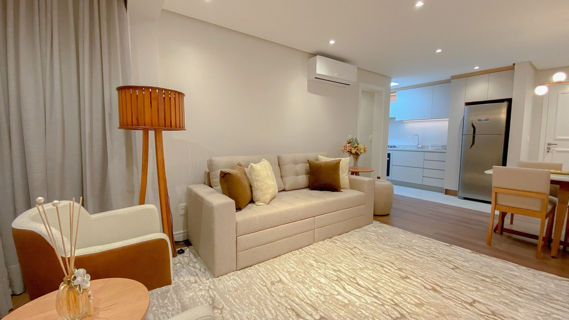 Que tal curtir o que há de mais belo na Serra Gaúcha em um apartamento, finamente decorado e mobiliado, situado na avenida principal de Canela/RS., acomoda até 04 pessoas. O imóvel é composto por 1 dormitório , Split inverter quente/frio. banheiro equipado com ducha a gás, secador de cabelo, TV de 55’, cozinha equipada com utensílios domésticos, forno, micro-ondas, cafeteira, e sanduicheira elétrica. Conta ainda com Máquina lava e seca de roupas, Wi-fi e 01 vaga coberta de garagem.