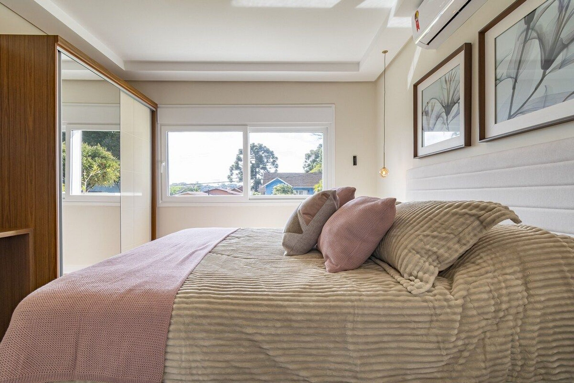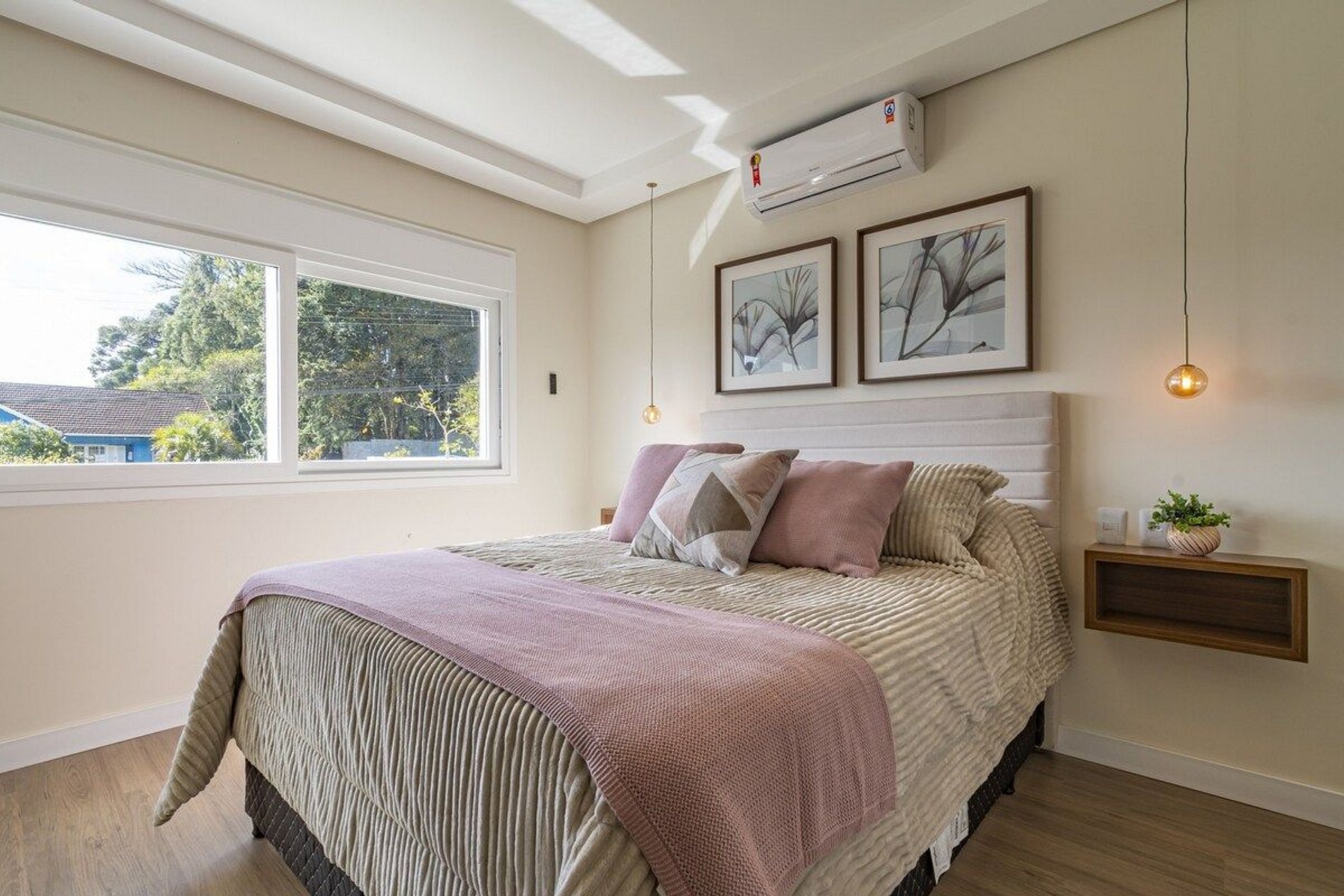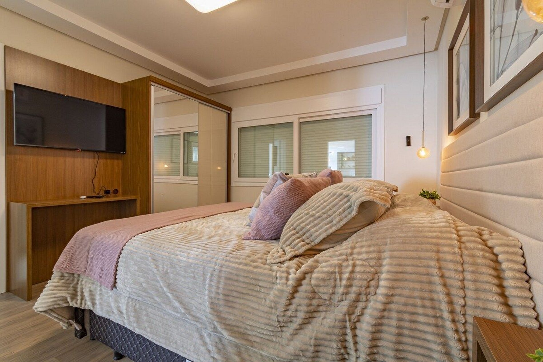 1️⃣ Suíte com cama Queen + 2 camas auxiliares