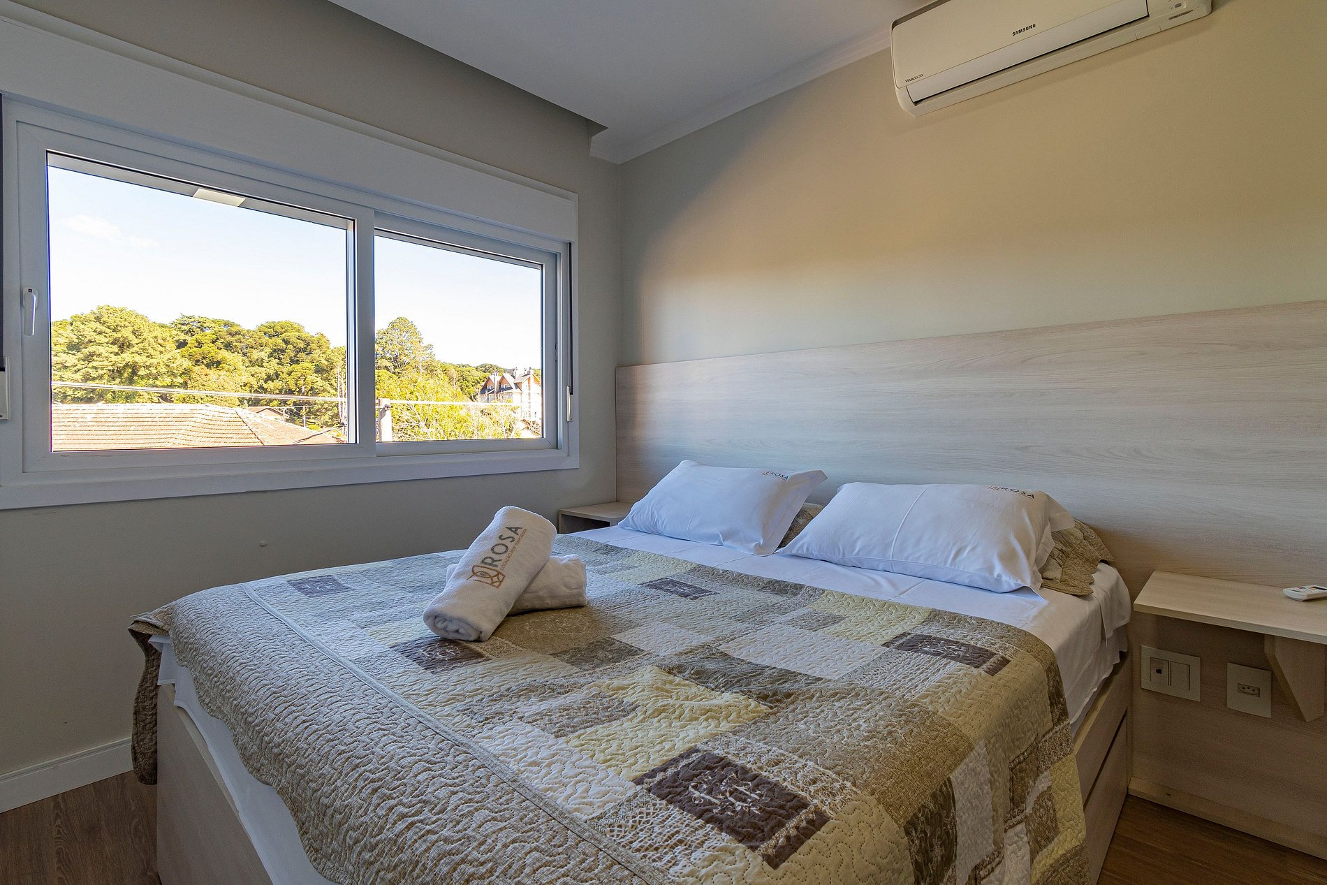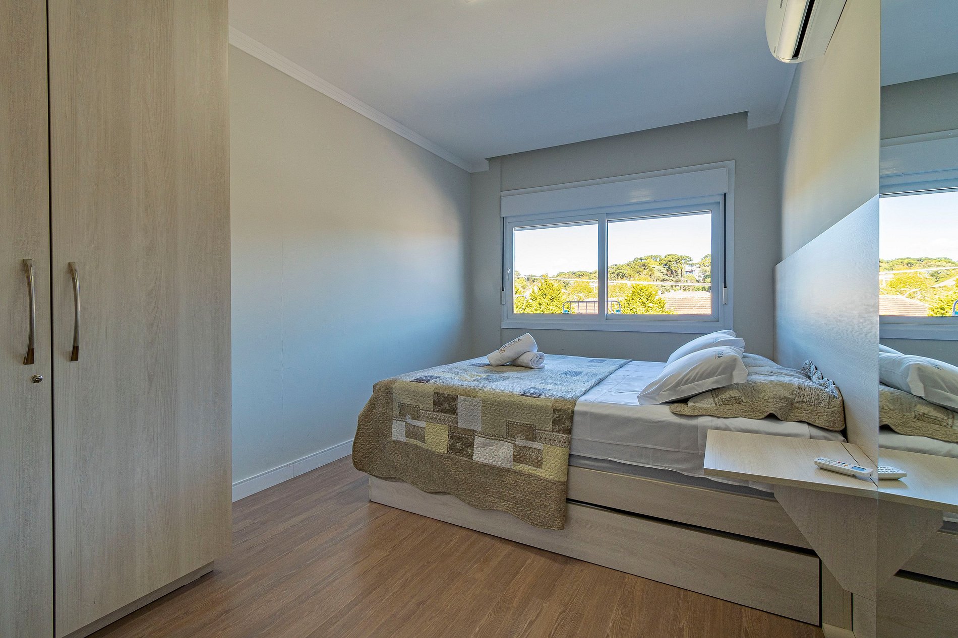 1️⃣ Suíte com cama Queen + cama auxiliar