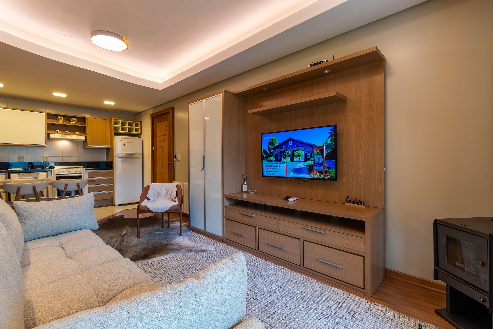 Lindo apartamento de 1 dormitório no centro de Gramado, com capacidade para 5 pessoas.