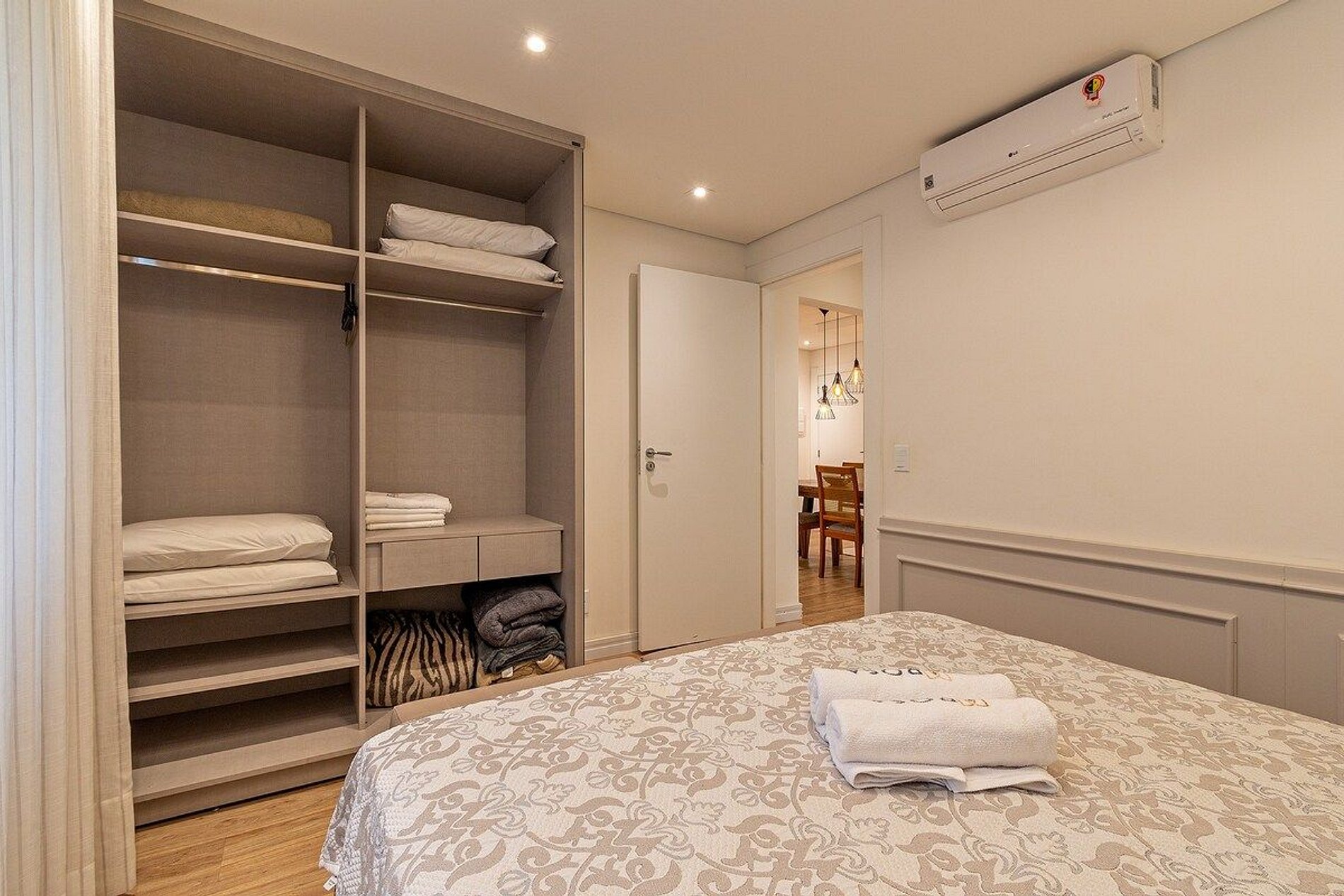 1️⃣ Suíte com cama queen + Cama auxiliar