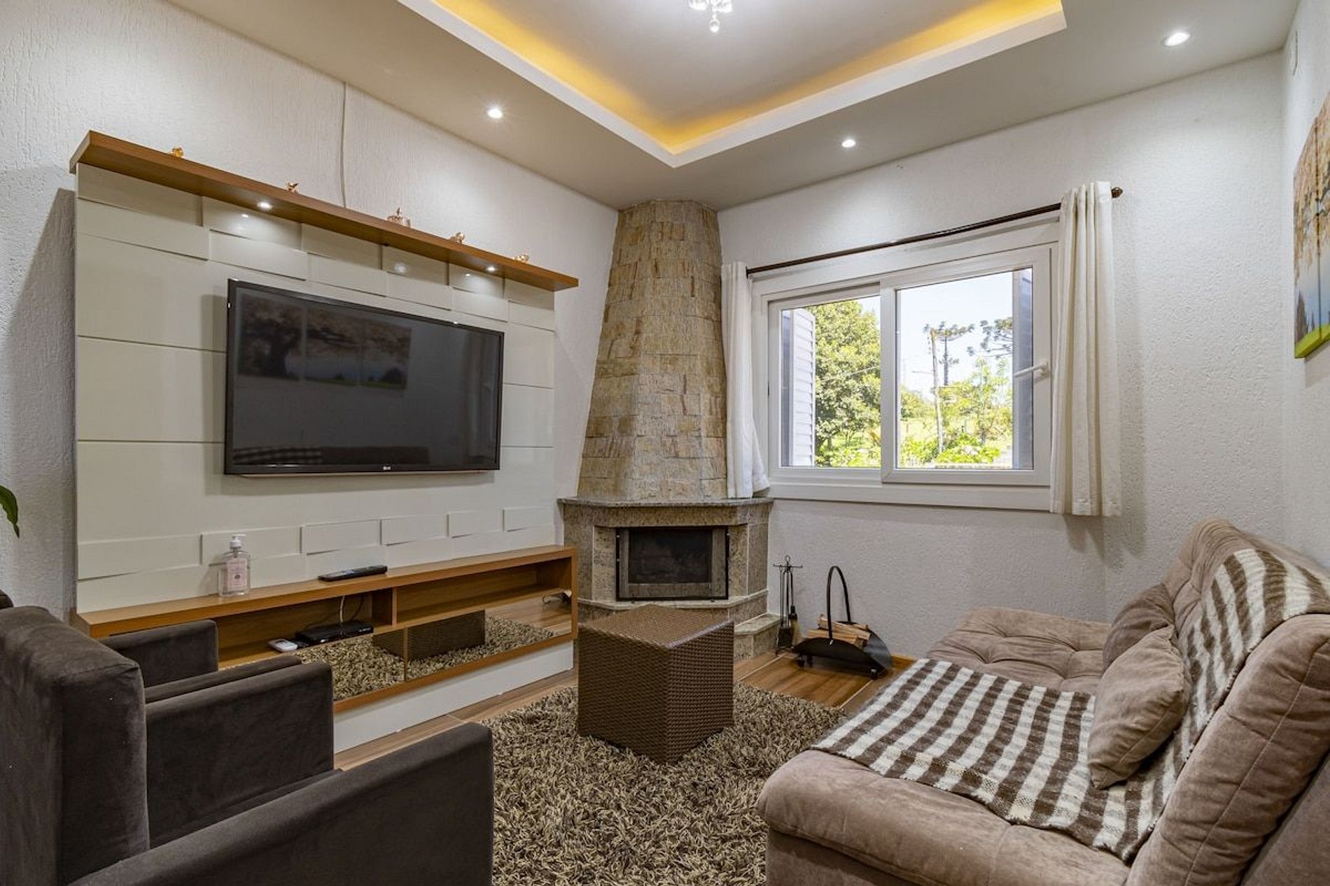 A propriedade fica a aproximadamente 1 km do centro da cidade e a poucos km das principais atrações turísticas. Dispõe de jardim, para curtir um fim de tarde, uma agradável lareira para os dias frios, além do acesso à internet (Wi-Fi), ar-condicionado( quente e frio). Cozinha americana, está equipada com geladeira, micro-ondas, congelador, louça/talheres, cafeteira e torradeira.