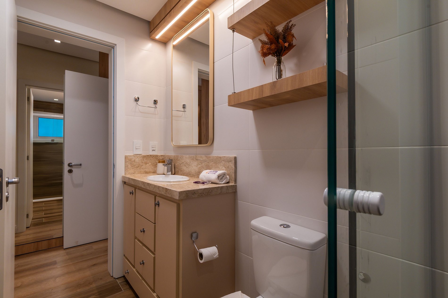 - 1 toalha de rosto por banheiro