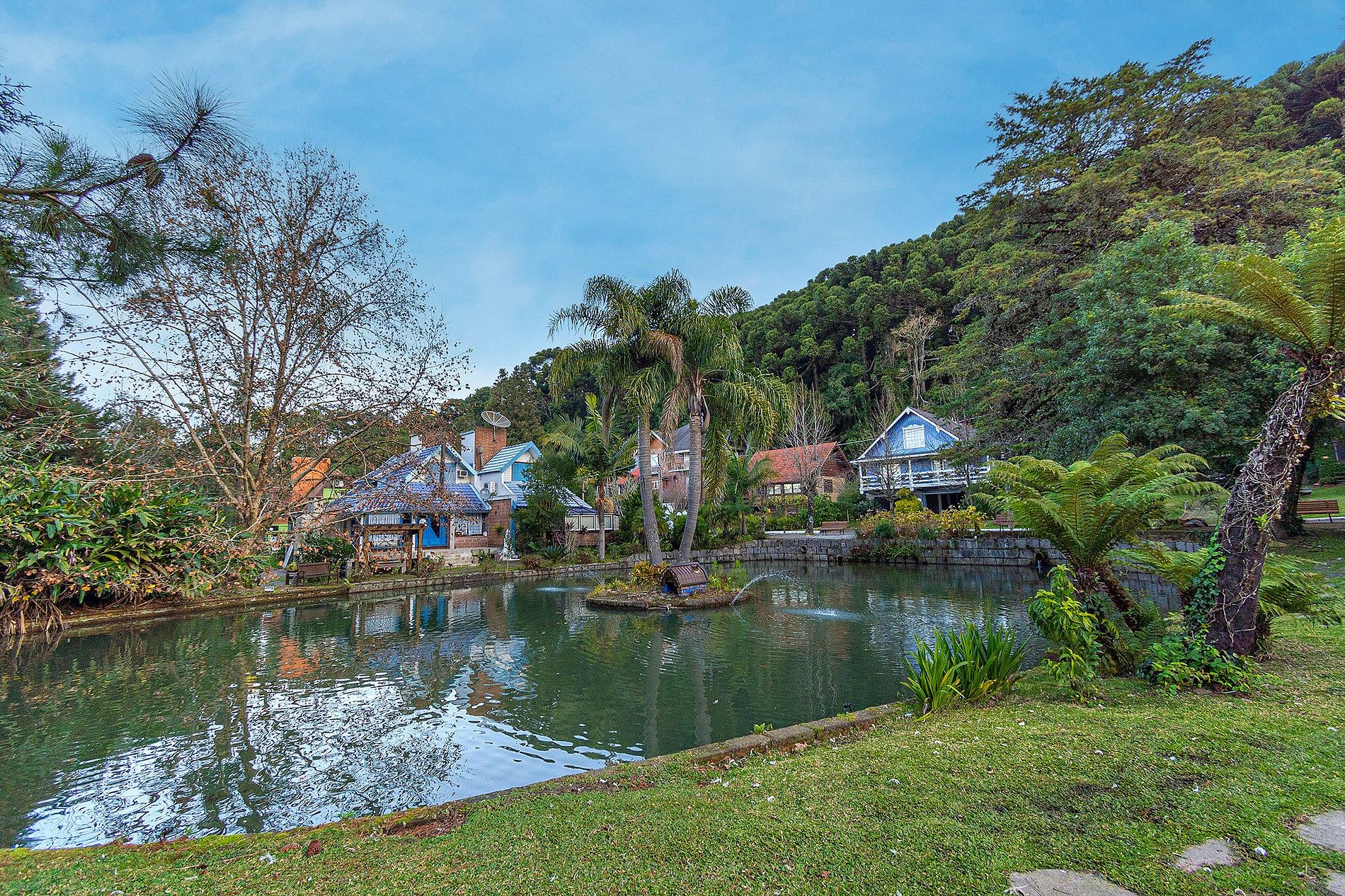 Condomínio Fechado no Centro de Gramado, possui bastante área verde e um magnifico lago em frente a residência.